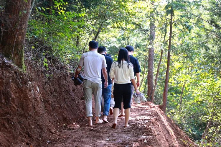 보성군, 읍면별 1개소 ‘맨발산책길’ 조성 본격화_보성읍 망제산에 조성한 ‘맨발 산책길’을 주민들이 걷고 있다