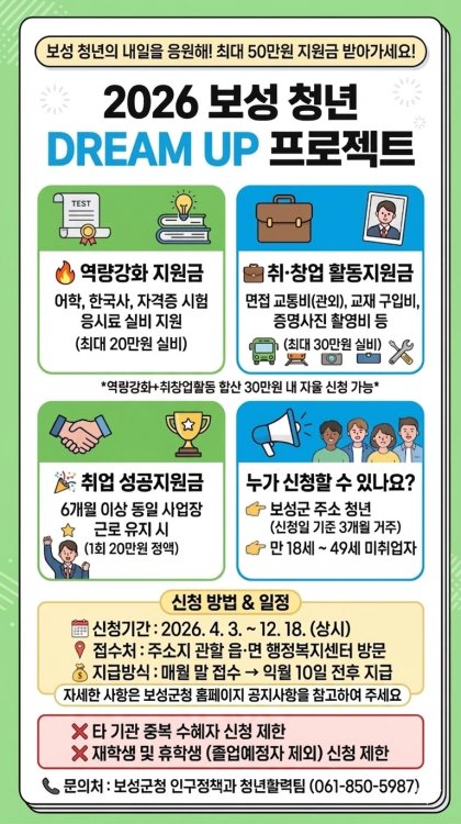보성군, 2026년 청년 DREAM UP 프로젝트 추진_‘청년 DREAM UP 프로젝트’ 홍보 이미지