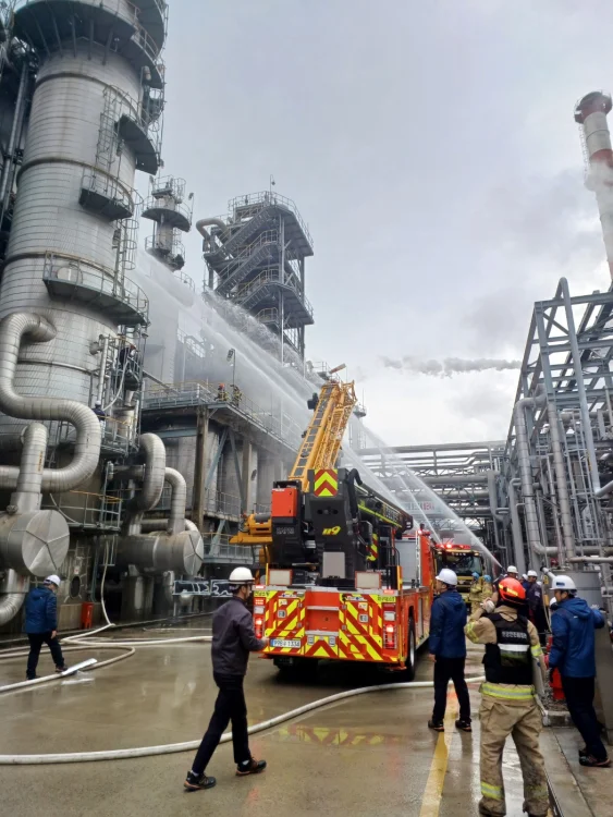 불은 용접 준비 중 열교환기 후단 배관에서 용매가 누출돼 자연 발화한 것으로 추정하고 있다.