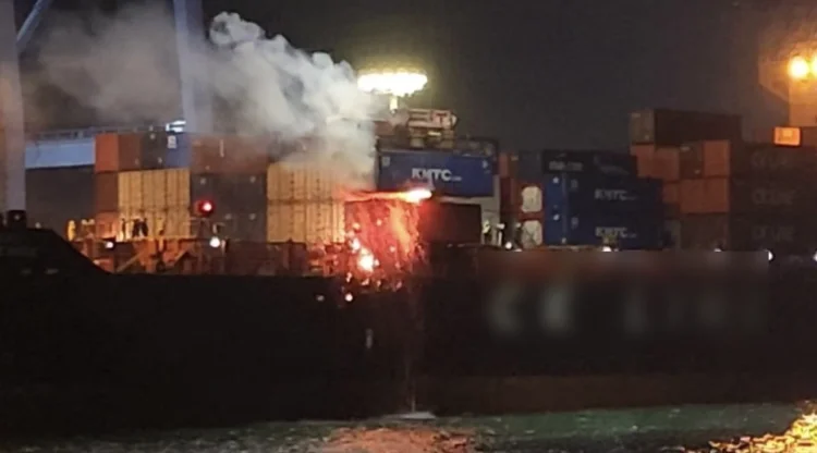 1일 여수해경 등에 따르면 지난달 28일 오전 7시49분께 신안군 관매도 남방 10해리(18.52㎞) 해상 항해중이던 컨테이너 선(2만738톤·승선원 17명)에서 불이 났다. (사진 = 여수해경 제공)경기 인천에서 전남 광양항으로 향하던 컨테이너선에서 불이 났으나 인명피해는 없었다.
