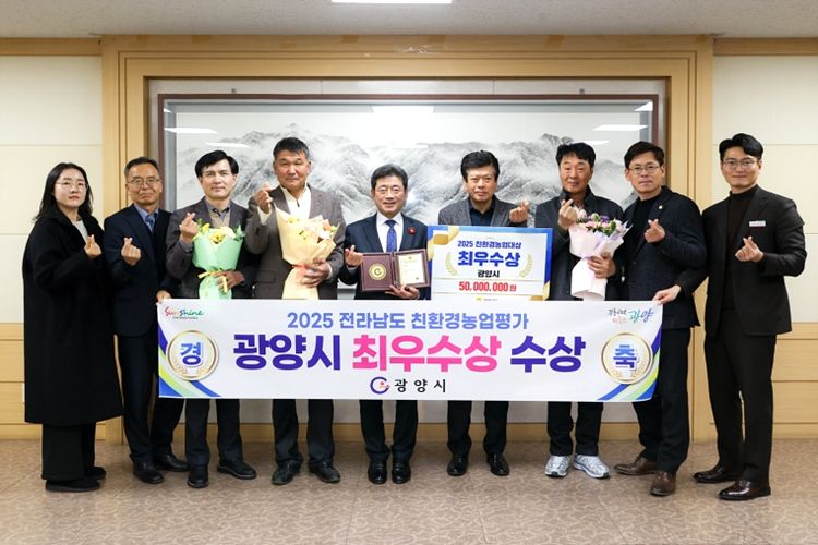 광양시는 전라남도 주관 ‘2025년도 친환경농업대상’ 평가에서 벼 이외 과수·채소 등 품목 다양화와 저탄소 농산물 인증 면적 대폭 증가 등 우수한 성과를 인정받아 최우수상을 수상했다고 밝혔다.