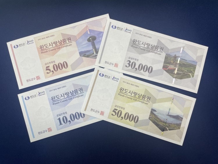 완도사랑상품권(지류) 완도군은 5월 ‘가정의 달’과 ‘2026 Pre완도국제해조류박람회’ 개최를 맞아 지역 내 소비 활성화를 위해 5월 한 달간 완도사랑상품권 특별 할인을 실시한다.