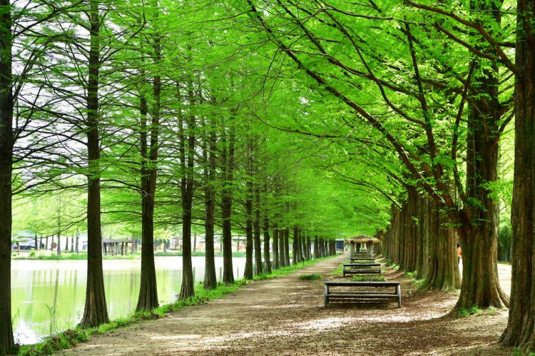 높게 뻗은 메타세쿼이아 나무들이 만들어낸 시원한 그늘 아래를 걸으며, 봄의 생명력을 만끽하기에 제격이다.