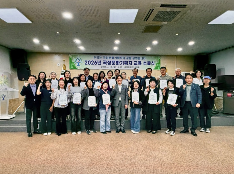 2026년 곡성문화기획자 교육 수료식 전남 곡성군은 지난 13일 곡성레저문화센터 대황홀에서 ‘2026년 문화기획자 교육과정’ 수료식을 성황리에 마쳤다고 15일 전했다.