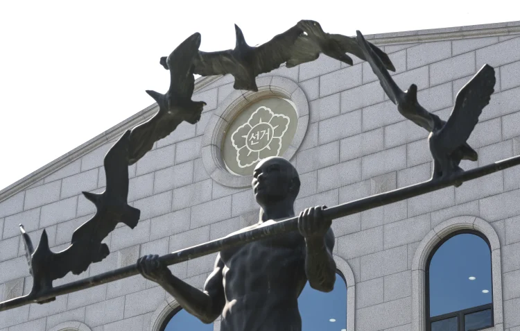 22일 경기 과천시 중앙선거관리위원회 앞에 조형물이 놓여 있다. 서울중앙지검 공공수사1부는 선거관리위원회의 채용 비리 의혹과 관련해 오전부터 중앙, 서울, 대전, 전남, 충북 등 …