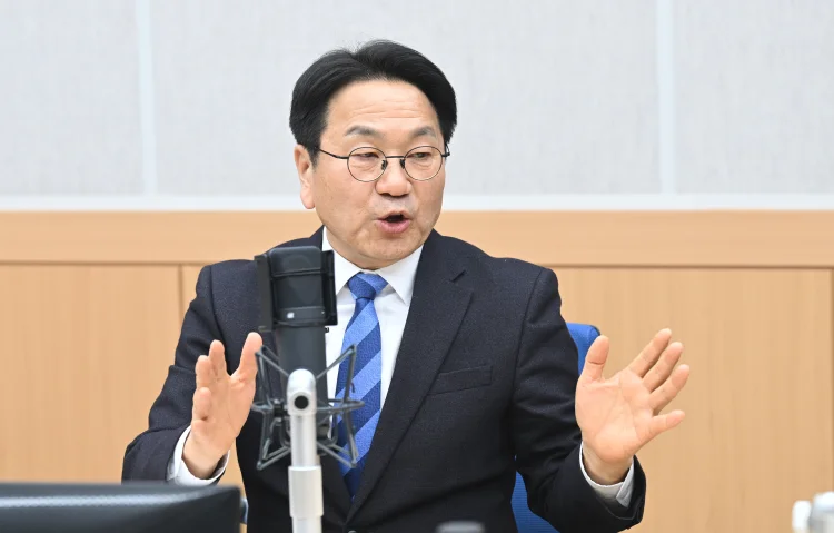 사상 첫 전남광주통합특별시장을 뽑는 6·3지방선거에 출사표를 낸 강기정 광주시장이 4일 오후 전남광주통합특별시장 출마예정자 초청 릴레이 인터뷰에서 질문에 답하고 있다.