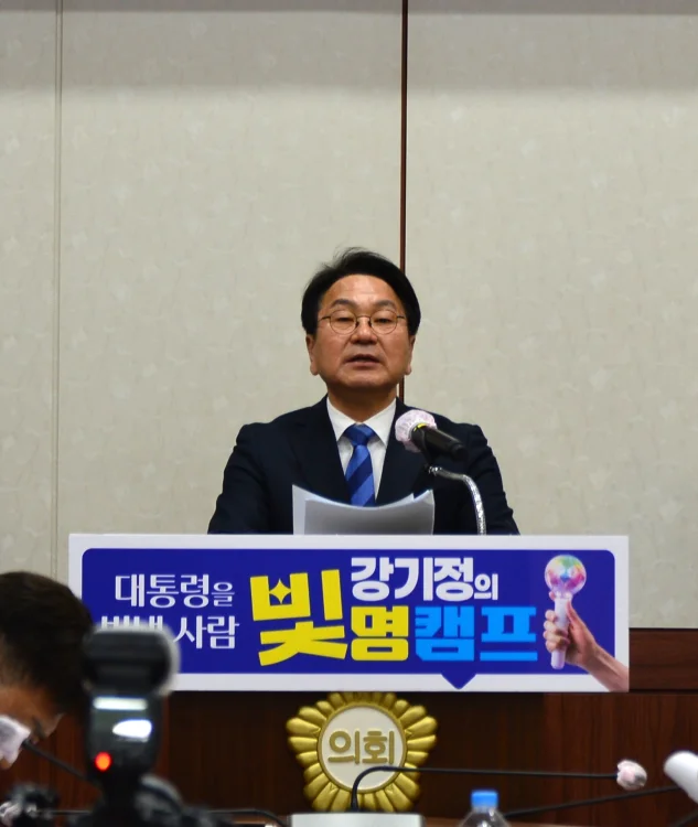 6·3전국동시지방선거 더불어민주당 전남광주특별시장 경선에 나선 강기정 광주광역시장이 16일 순천시의회에서 '전남 동부권 100만 도시를 위한 10가지 약속'을 발표했다.