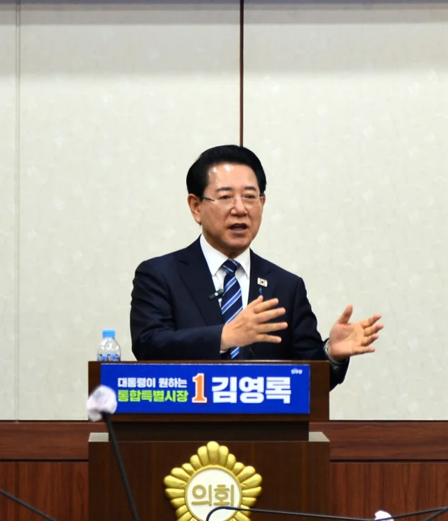 그는 "거대한 통합의 돛을 올린 전남광주특별시는 더 이상 변방이 아니라 세계와 당당히 겨룰 대전환의 중심지"라며 "우리 특별시의 심장, 동부권이 단순한 지역 거점을 넘어 대한민국의 미래 첨단산업과 글로벌 관광의 중심지가 되도록 온 힘을 다하겠다"고 말했다. 이어 "대통령이 원하는 혁신 행정가 김영록이 주민 분들과 함께 '동부권 6대 발전 전략'을 반드시 현실로 만들어 내겠다"고 강조했다.