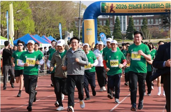 김민석 국무총리가 5일 오전 전남대 광주캠퍼스에서 열린 5·18 캠퍼스 마라톤대회에 참가하고 있다. (사진=국무총리비서실 제공)김민석 국무총리가 5일 "전남·광주가 통합되고, 메가특구가 만들어지고, 공공기관이 이전하면서 호남은 완전히 새롭게 천지개벽 부활할 것이고, '뉴호남'이 대한민국의 선두주자가 될 것"이라고 말했다.
