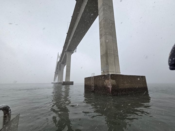 대형 화물선과 접촉해 파손된 신안 천사대교 교각. (사진=목포해경 제공)중국으로 향하던 화물선이 신안 천사대교 교각을 접촉했으나 큰 피해는 발생하지 않았다.