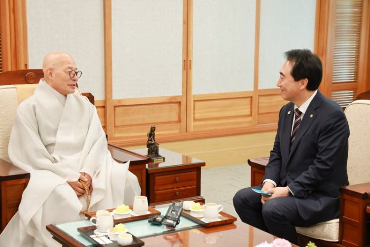 박수현 더불어민주당 충청남도지사 후보가 27일 서울 종로구 조계종 본사를 찾아 총무원장 진우스님을 예방하고, 충남의 전통 종교문화 보전과 지역발전 방향을 논의했다.