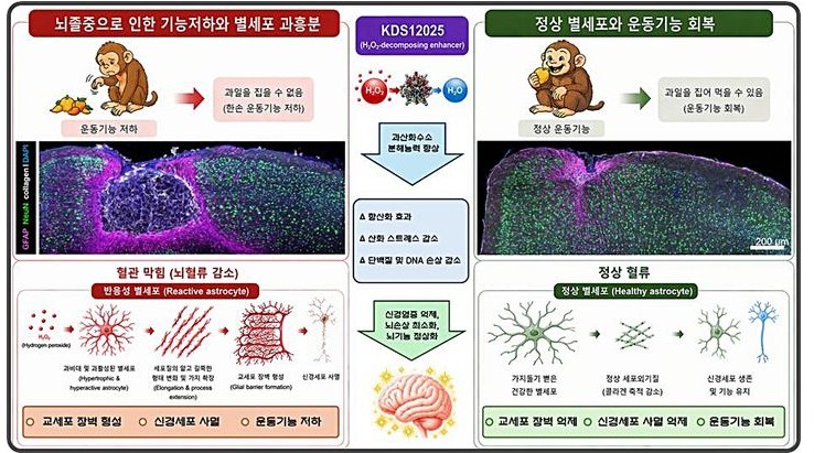 이번에 연구진은 해당 원리를 적용해 자체 개발한 신약 후보물질 'KDS12025'를 영장류 뇌졸중 모델에 투여한 실험을 진행, 신경 손상 완화와 운동기능 회복 가능성을 확인했다.