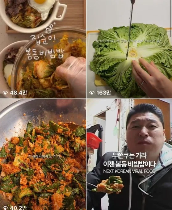 이같은 흐름은 봄동배추 제철을 맞아 2008년 KBS에서 방송한 예능 프로그램 '1박 2일'에서 강호동이 선보인 봄동비빔밥 먹방 영상이 사회관계망서비스(SNS)를 타고 다시 주목받은 영향으로 풀이된다. SNS에는 봄동배추 손질법과 개성을 더한 각종 레시피들이 연일 끊이지 않고 올라오고 있다.